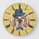 Percival är en labrador Retriever som ber att tas på allvar..Därav finare-hatten och flugtiden. Digital vattenfärg hund porträtt på guld i mönstrad bakgrund