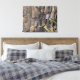 En peregrin falcon parsar på skevade träd-trunkar som går ut från Palisades kragar.