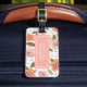 Resa i stil med den här blommigten bagagetaggen som innehåller ömtåliga vattenfärgade blommor med persikocentrum på framsidan och persikobaksidan. Anpassa den genom att ersätta platshållartexten. Om du vill ha fler alternativ som att ändra teckensnittet och det är storlekt/färg eller mellanrummet mellan brev klickar du på knappen "Anpassa". *Observera att Zazzle Watermark som visas i zoomförhandsvisningen inte visas på den färdiga tryckta produkten. ©Rosewood och Citrus