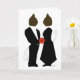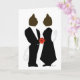 Kattpar i aftonklänning. Den galanta hankatten erbjuder sin dam en vacker röd ros. Det perfekta kortet för kattälskare som gifter sig eller firar en årsdag.