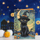 Den här förtrollande Halloween-kortet har en fantasifull design inspirerad av Vincent van Goghs ikoniska stil. Framsidan visar en svart katt som bär en fantasifull spetsig häxhatt, omgiven av flera pumpor. Bakgrunden är en hypnotiserande virvel av stjärnor och en halvmåne, som påminner om Van Goghs ”Stjärnenatt”, och ger ett konstnärligt och magiskt tillskott till Halloween-temat. Inuti kortet finns en varm orange bakgrund med texturförändrad text som lyder: ”Önskar dig en perfekt kuslig natt. Glad Halloween.” Detta lekfulla meddelande kan anpassas eller tas bort genom att klicka på ”Anpassa denna mall”.