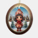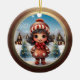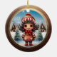 Perfekt pepparkaksgossepresent för henne Unik keramisk prydnad med en rustik brun träram och en vintersceneri med julgranar och vita snöiga hus i byn med julbelysning i bakgrunden, som fångar magin och glädjen under säsongen. Orden "Let it Snow" lyser starkt på den snöiga himlen. Whimsical kvinnlig karaktär grafisk illustration dekoration med vinterlandskap. Söt present som passar perfekt som liten julklapp till vänner, familj eller kollegor. Den hängande dekorationen med tvåsidig design ser alltid festlig och komplett ut, oavsett hur den vänds. Beställ din present till henne idag och gör din dam speciell under högtiden! 🎄