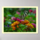 Fantastisk bakgrund med en zebra fjäril, vila och äta. Blommorna luktar så uppfriskande i trädgården som zebrafjärilen seglar från blomma till blomma. Han hittar äntligen en perfekt att vila och äta. Vackert! Köp den här Poster och lägg den i Perfekten Ställe. Var välsignad!
