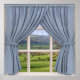 Tranquil Scenery med en grönt dal och rullande backe? Det är höger där utanför ditt fack. Detta måste vara en tävling för den vackraste synen genom ett fönster ram. Söt-, semisheerblåa- och vita rand-gardiner och ett fyrkantigt fönster med 9 rutor fullbordar illusionen med en underbar 3D-effekt. Förutom är en fredlig scen av grönt fält utspridd med får, och det finns till och med en liten stuga. Det här fotografiet togs av mig (zazzle.com/scenefromawindow) på platsen i det vackra Devonshire (England).