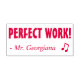 Den här roligten gummiformgivningen i frimärke innehåller det motiverade meddelandet "PERFEKT WORK!" och en anpassad pedagogisk namn. Den har också en dekorativ musikalisk lapp. Den skulle kunna användas av en lärare eller en lärare när de markerar uppdrag, för att erkänna att student har gjort bra ifrån sig.