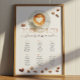 Skapa en varm och välkomstande beröring med anpassadet "Perfekt Blend" - en charmerande kaffematchdesign med en vattenfärgscappuccino med hjärtlatte konst och utspridda kaffebönor. Perfekt för bröllop, semesterfirare eller varje evenemang där gästerna behöver hjälp med att hitta sina platser. Anpassa med gästrubriker för namn, bordsnummer eller anpassningsbar till kostym i firande.