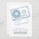 Contemporary och unika meddelanden i bröllop spara datum innehåller en illustration av en coola på ett kassettband.