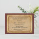 Denna formella inbjudan har utseendet av gammalt pergamentpapper med rödbrun läderlookande kant. Även om den visas som en pensionsinbjudan kan denna design enkelt anpassas för alla evenemang. (Inbjudan är inte pergament och har inte heller något riktigt läder).