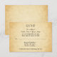 En bröllopsdesign med en tryckt bakgrundsdesign i stilen av gammalt vintagepapper, utformad för att likna ett falskt pergamentmönster. Bakgrunden är ett mönstrat tryck i gulaktiga beige / tan färger. Det finns stilfull svart text som kan anpassas.