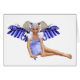 Den här söta lilla fadern är klädd i en söt, blå gingham pinabefore-klänning, har blonda pigesar och underbart blått vingar som är gjort av blommor.