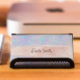 eller pastellpenseldrag för guld för ditt namn över en abstrakt periwinkle- och aqua opalescent digital-konsform. Opal stil glam-affärskort. Den digitala bilden i designen är bilder som skrivs ut som ett foto.
