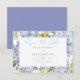 Den här designen har vattenfärgsblått och vitt vattenblått och vitt vattenfritt blomma med ett tunt periwinkle ram runt ett vitt centrum. Baksidan är antingen tillgänglig i hela vattendragets utformning eller i en fast vinkellblått. Kortet är en del av Periwinkle Blue & White Hydrangea Flowers Bröllop Suite med kort skapat av enbart Farmhouse Press.