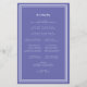 Elegant, kortsiktiga ceremoniprogram för bröllop-med kortslutning, med en dubbla som ramar in gräns i skarp vit på trendigets ytterblåa bakgrund. Traditionell, klassisk formulering ger en tidlös sofistikering. Anpassa ceremonin i bröllop till dina gäster i trendigets skript och brev. Kortets baksida matchar med vita bokstäver på en blått baksida och handlar om bröllopsfesten. Om du vill ha optimala resultat ersätter du mallinformationen med din egen information som lämnar mellanrummet mellan stycken som i exemplet. Kapitalisera och använda allt nedre fodral där så anges. Kontakta mig gärna på invitationsuites@gmail.com eller med meddelandefunktionen om du har frågor om detta eller någon av våra produkter eller har en begäran från anpassningsbar färg.