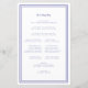 Elegant, minimalistiskt ceremoniprogram för blått och vitt bröllop har en enkel modern utformning med en dubbla som ramar gräns i periwinkle blue på en skarp vit bakgrund. Traditionell, klassisk formulering ger en tidlös sofistikering. Anpassa ceremonin i bröllop för dina gäster i trendiget periwinkle calligraphy lettering and script. Kortets baksida matchar med ytterkellblått på skarpt vitt och handlar om din bröllopsfest. Om du vill ha optimala resultat ersätter du mallinformationen med din egen information som lämnar mellanrummet mellan stycken som i exemplet. Kapitalisera och använda allt nedre fodral där så anges. Kontakta mig gärna på invitationsuites@gmail.com eller med meddelandefunktionen om du har frågor om detta eller någon av våra produkter eller har en begäran från anpassningsbar färg.