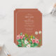 En vacker vildblomma och Periwinkle bröllop-design. En unik utformning som användor botanisk blommigt för rustik vintage. En elegant brände orangen terracotta för att återskapa blommigten med ett grönt streck. En bröllopsinbjudan med den moderna inslag. Det finns även alternativ för matchning av bröllop-kontorsartiklar och andra bröllopsinbjudningsformat.
