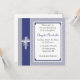 Inbjudan till religiösa av Elegant i periwinkle-poktbakgrund med sidans gräns och ornerad crucifix dekorerad med fjärilar. Inbjudningar är enkla att anpassa och kom slutförs med kuvert och ditt val av papprare.