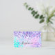 Faux glatt periwinkle och lila glitter mot akva, blått, rosa, lavender, periwinkle och lila iridescent färg leopard avger digitalbild. Modern namnteckning skriptdesign för hennes lilla företag. All sparsam och glittrande inslag i denna moderna gigantiska kortdesign är digital grafik.