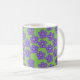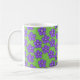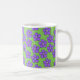 Mugg har en vår-design av en fält av blommor i periwinkle på gröntens bakgrund.