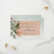Den här vackra blommigten för persikor, rost, och grönt har en mjuk grönt vattenfärgsbakgrund med faux guld ram. Det mjuka persikocentret innehåller detaljerna. Vackert, elegant och rustik. Kortet är en del av Peach & Rust Flowers på Grönt Watercolor Background Bröllop Suite av kort som skapats av enbart Farmhouse Press.