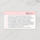 Upptäck den ultimata handledningen för att ta hand om din nyligen applicerade permanenta ögonfransar med Affärskortet Permanent Eyeliner Aftercare Tips. Detta kompakta och informativa kort är ett måste för var och en som nyligen har genomgått ett permanent ögonfransförfarande. Kortet innehåller en samling nödvändiga " ej " - tips och instruktioner för att säkerställa god eftervård för din permanenta ögonfransar. Den hjälper dig att undvika att bibehålla livslängden, livskraften och det allmänna utseendet på din ögonfransar. Varje gång du tittar på det här affärskortet kommer du att påminnas om de viktiga eftervårdsanvisningar som krävs för att bevara skönheten och livslängden hos din permanenta ögonfransar. Det fungerar som en praktisk referens som gör att du kan vara säker på att du tar hand om dina ögonfransar och behålla dess bedövande effekter. Ta kontroll över din permanenta eftervård med Eyeliner Aftercare Tips-Affärskortet. Oavsett om du är en säsongsbetonad proffs eller en ny till permanent makeup är detta kort en oumbärlig verktyg för att säkerställa att din ögonfransar förblir felfri och livfull i flera år för komen.