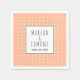 Denna pappra napkin från bröllop kombinerar en modern beröring med en vintage vibe med en vacker svart- och vit handdragen stil-design. Varje detalj accentueras noggrant och en unik karm läggs till i dockan. Parets namn är elegant utvisad i handdragen stil typografi, vilket gör utformningen personlig. Namn placeras på ett vitt ram, omgivet av ett vackert geometriskt mönster i persikor och vitt.