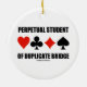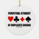 Om du spelar två broar måste du alltid lära dig behållan. Visa din bryggbrons/dupliceringsbrons attityd med den här prydnadsformen med fyra kort-kostym tillsammans med följande brotruism: "Perpetual Student of Duplicate Bridge" (Perpetual of Duplicate Bridge).
