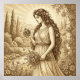 Persefone, den mystiska drottningen av undervärlden och vårens förnyelsesgudinna, avbildas här med den granatäpple som binder henne till riket under jorden. Omgiven av blommor och den naturliga världens stilla skönhet representerar hon livets, dödens och återfödelsens eviga cykel.