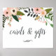 Denna eleganta blommiga skylt är designad för att matcha vår bröllops- och baby shower kollektion "Peach Meadow" och visar gästerna var de ska lämna sina kort och presenter. Personliggör med en rad med egen text i kalligrafi-stil (visas med "Kort & presenter"), infattad av persikablommor och gröna botaniska blad.