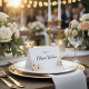 Förhöj din bröllopsdags dukning med vårt eleganta blommiga platskort. Med mjuka persika- och dammrosa blomster med en touch av guld folieeffekt, är denna minimalistiska design perfekt för romantiska vår- eller sommarbröllop. Helt anpassningsbar mall för gästnamn och bordnummer