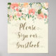 persika blomster bröllop gästbokskort elfenben poster