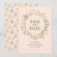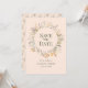Fördjupa dig i den förtrollande världen av vår vattenfärgssköld av vildblommor i nyansen persikofuzz för din Save The Date-inbjudan – en fängslande blandning av bohemisk charm och tidlös elegans. Den vita duken fungerar som en ren bakgrund, prydd med ömt arrangerade vildblommor som bildar en pittoresk ram runt den centrala "Save the Date"-inskriptionen. Nedan finns ett anpassningsbart område som låter dig lägga till en personlig touch med detaljerna om din speciella dag.