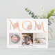 Persika, MAMMA-typografi-fotokort för rosa ros-Mors dag. Den har ord "MAMMA" i ett dekorativt avtrycksteckensnitt i persikor, buketter till rosa ros och tre foton. Baksidan har en mönster i ord "MAMMA" i persikor. Vissa foton är läcker av fotografi © Storytree Studios, Stanford, CA
