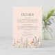 Fyll i din bröllopsbrevpappersensemble med vårt Peach Fuzz Wildflowers bröllopsdetaljkort – ett charmerande tillägg som harmoniserar med din festlighets skönhet. Detta kort har en nedre kant dekorerad med en frodig äng av persikofärgade vildblommor, vilket ger en touch av naturlig elegans till dina bröllopsdetaljer.