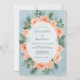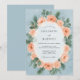 Denna design har en mjuk och romantisk estetik som är perfekt för ett kallväderstillfälle. Paletten blandar varma persikotona med en sval dammig blå bakgrund och dämpad salvia-grönska. Frodiga persikorosor omges av ömtåliga eukalyptusblad och texturerade tallbarr.