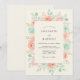 En mjuk akvarellarrangemang av persikorosa rosor och mintgröna eukalyptusblad skapar en romantisk estetik. Denna design har en lugn palett av pastellkorall och salvia grönska mot en krämfärgad bakgrund. Ömtåliga botaniska illustrationer ger en graciös och tidlös look för en vårens ängshändelse.