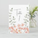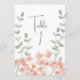 Den här designen skapades med inslag från mina ursprungliga vattenfärgsfärger. Elegant Peach modern blommigt parad med sage grönt Eucalyptus-stammar skapar ett vackert och delikat bord-kort för en bröllopsmottagning eller party. Oavsett om du vill ha en studenhetskärna, vintage eller vib, så kommer den här designen att upphöja alla händelser!