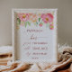 Denna persika och rosa peony roséguld mimosa bar skylt är perfekt för ett elegant bröllop. Den blomsterinspirerade designen har en vacker komposition av akvarell peonior i nyanser av ros och korall som matchar delikat falskt roséguld folie kalligrafi.