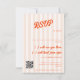 Vi presenterar vår roliga peach- och mandarinfärgade bröllops-RSVP-kort med QR-kod, designat för att tillföra en touch av retro-charm till din speciella dag. Gör det enkelt för dina gäster att svara genom att erbjuda två RSVP-alternativ på ett kort. Den mjuka peachfärgade randiga bakgrunden kompletteras perfekt av den livfulla mandarinfärgade retro-kalligrafin som tillför en färgklick och sofistikation. Texten är helt anpassningsbar.