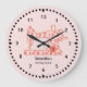 Den här sytemedelns väggklocka skrivs ut med en sydd maskin-bild som är mönstrad i persikofärgad paisley, med din egen monogramaccent på den.. Det är lätt att se siffror på ett ansikte med normal rosa, men det kan ändras till vitt eller annat färg. Anpassa texten i den enkla Zazzle-redigeraren, Underbarare väggdekorpresenten för din favoritsömnings- eller filmdragering, som du kan välja mellan runda eller fyrkantiga stilar.