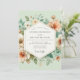 Ömtåliga persiko- och elfenbensfärgade blommor blandas med mjuk grön lövverk mot en lugn mintgrön bakgrund. Denna design frammanar en mild, romantisk atmosfär, perfekt för en fantasifull bröllpsfest. Frodig blomsterkonst skapar en charmerande eterisk estetik.