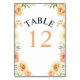 Persikofärgblommor och löv bröllop bordsnummer