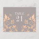 Söt och delikat Bordnummer Postkort med persikofjärilar och blommiga vinrankor på en stoftig grå bakgrund. Detta eleganta bröllopskort är det perfekta valet för ett modernt och chic bröllop. Lätt att anpassa, lägg bara till rätt bordnummer i det tillgängliga textfältet. Klicka på "Anpassa" för fler anpassningsalternativ.