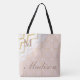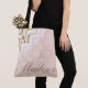Vår anpassade monogram-totebag är dekorerad med en persika, rosa och guld geometrisk och sicksack-mönster. Anpassa med ditt namn och initial. Se vår fullständiga produktlinje i vår Zazzle-butik.