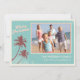 Julkort med ljusblå vintage och handflatan träd dekorerade ljus. Anpassa med ditt eget foto.
