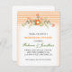Det här trendiget runt bröllop-repetitionsmiddagsinbjudan innehåller en spray av persikor, orange och oliv grönt trädgårdsblommor på toppen. Bakgrunden är ett trendig vågrät rand mönster. Med anpassade kan du lägga till din inbjudningsinformation.