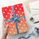 persikor och rött presentpapper