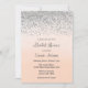 Inbjudningskort för möhippan med silver glitter utseendedesign och vattenfärgbakgrund för persikofärgad orange.