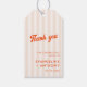 Perfekt och tangerin tack för att du ger märkre som är designade för att lägga till en aning retro-charm till din speciella dag. Den mjuka persikobakgrunden kompletteras perfekt av den vibrerande tangerinretypografi som tillför en popo av färg och sofistikering. Texten är helt och hållet anpassade.