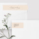 Chic- och elegant bröllop-omslutningsadressetikett, med ett par namn i en contemporary svart typsnitt mot en mjuk persikobakgrund. Det här objektet ingår i en bröllop-svit som innehåller inbjudningar och som är stationär i en mängd olika neutralter och matchande artiklar. .