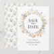 Fördjupa dig i den förtrollande världen av vår Spara datum-inbjudan med akvarell-persikor och vilda blommor – en fängslande blandning av bohemisk charm och tidlös elegans. Den vita duken fungerar som en ren bakgrund, prydd med ömt arrangerade vilda blommor som bildar en pittoresk ram runt den centrala "Spara datum"-inskriptionen. Nedan finns ett anpassningsbart område där du kan lägga till en personlig touch med detaljerna om din speciella dag.